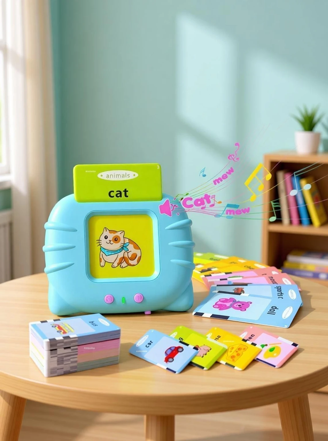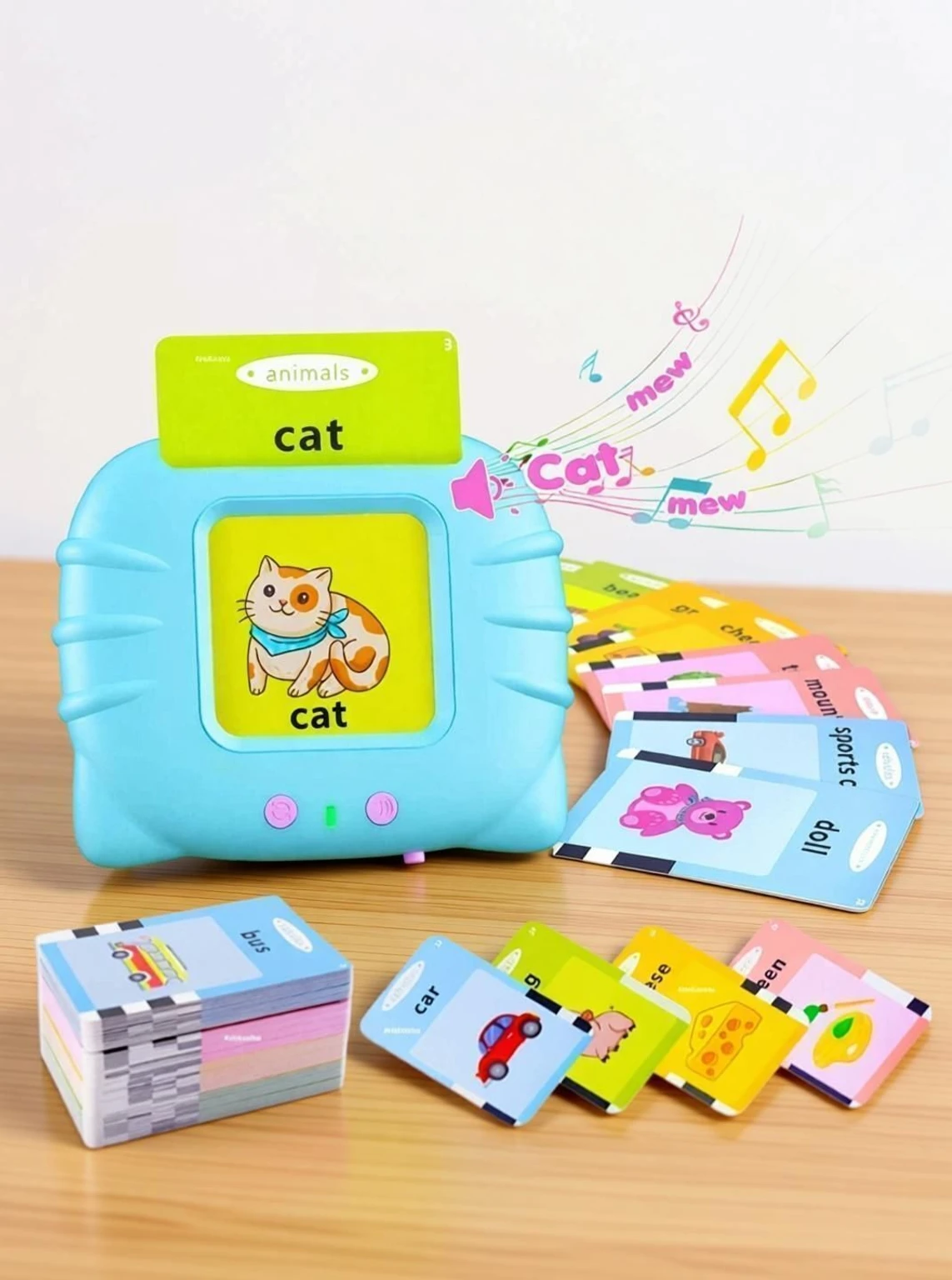 Audible Flashcards for Toddlers – This engaging learning toy includes 112 colorful double-sided cards (224 words) with clear pronunciation and fun animal sounds. The device speaks each word aloud, helping children understand better through both visual and auditory learning, making early education more interactive and enjoyable.